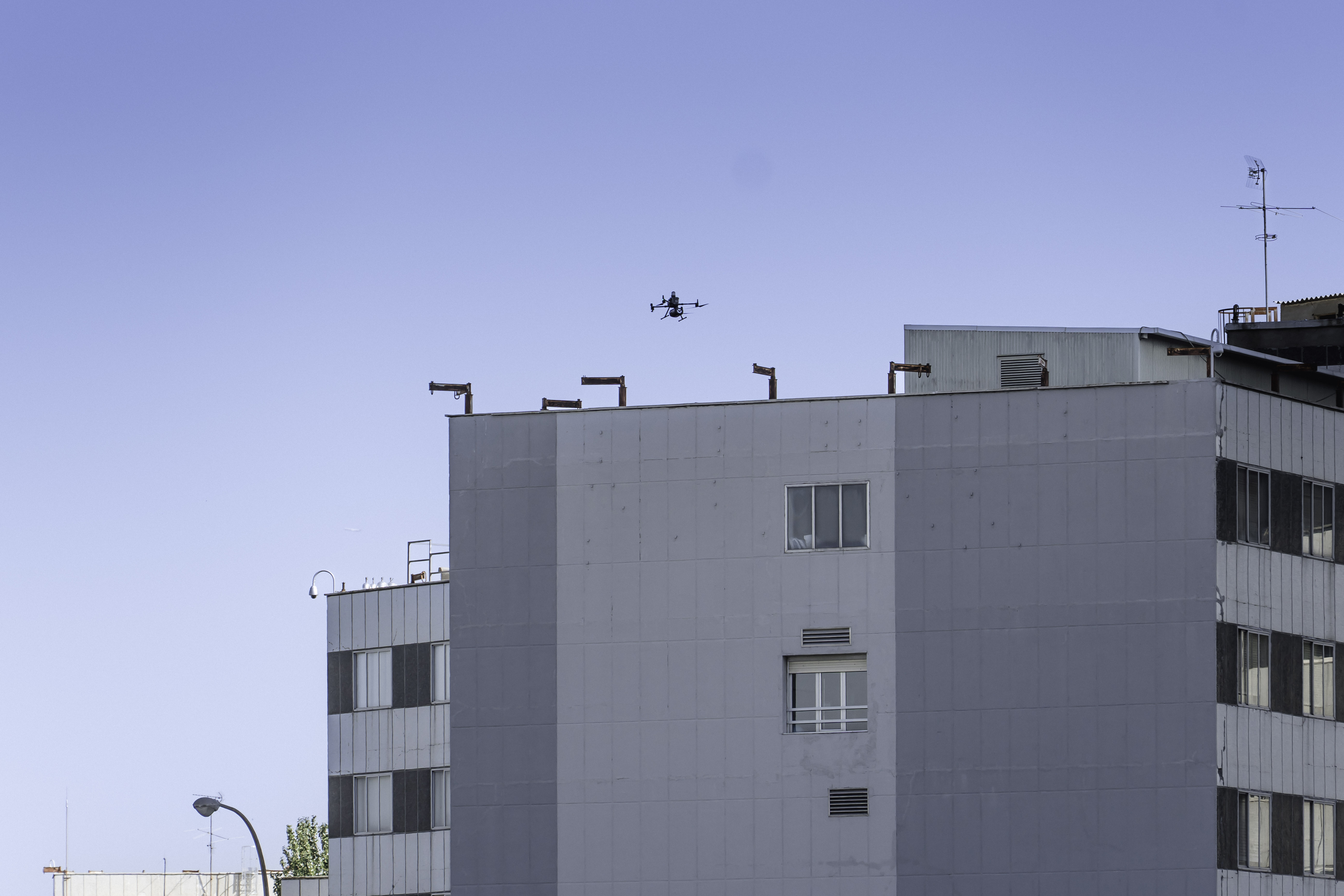 The drone took off from the roof of one of the buildings of the Carlos III Hospital and landed at the Hospital de La Paz, crossing in just three minutes the distance between the two buildings, which is 1.5 km by road and about 900 meters in a straight line, flying at a distance of 30 meters from the ground.